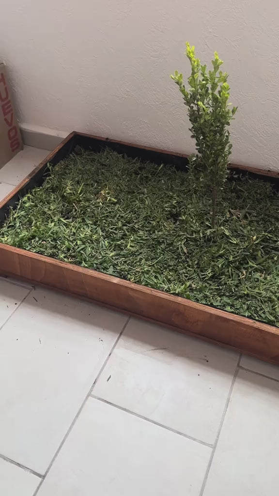 El Tapete Dogma LawnBox imita el césped real, absorbe olores y mantiene tu hogar limpio.